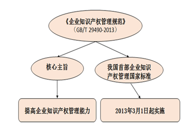 “标”指的是2013年3月1日正式实施的GB/T29490-2013《企业知识产权管理规范》,该标准是我国首部企业知识产权管理国家标准,由国家知识产权局制订,经由国家质量监督检验检疫总局、国家标准化管理委员会批准颁布。企业知识产权贯标,顾名思义,就是企业开展贯彻实施国家标准《企业知识产权管理规范》GB/T29490-2013的行为活动。